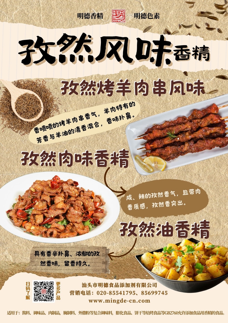 明德孜然風(fēng)味系列香精 濃郁孜然 烤香誘人汕頭市明德食品添加劑有限公司推出的孜然風(fēng)味系列香精,涵蓋孜然烤羊肉串風(fēng)味、孜然肉味香精、孜然油香精等多種調(diào)性。產(chǎn)品風(fēng)味真實,香氣穩(wěn)定,適用于肉制品、調(diào)味料、休閑零食、腌制料及復(fù)合調(diào)味等B端應(yīng)用,幫助工廠快速打造具有記憶點的孜然風(fēng)味。